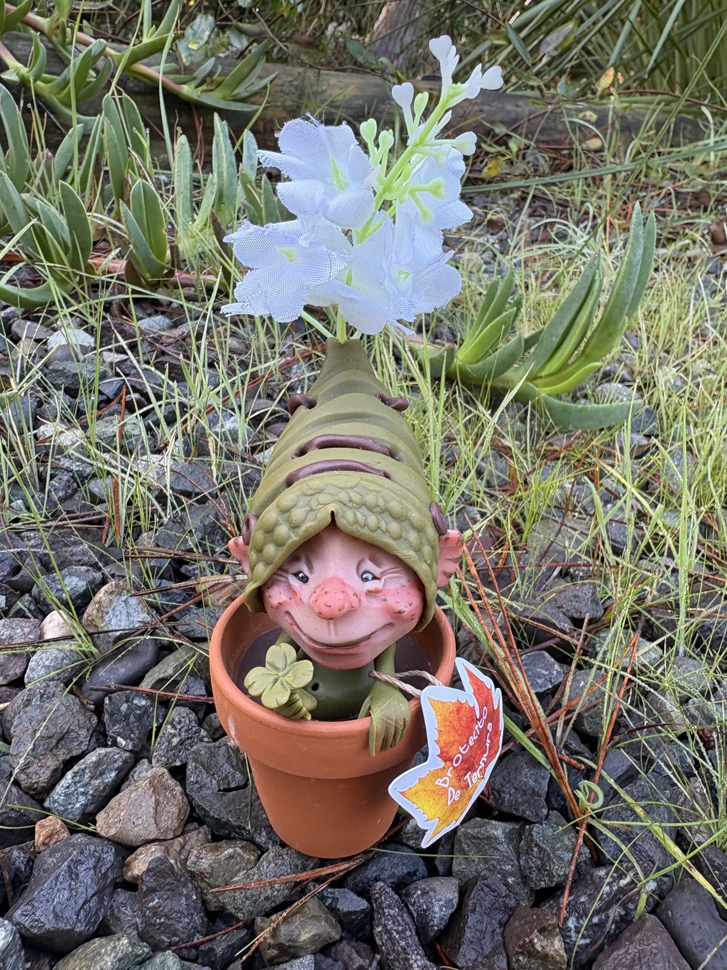 Este brotecito viene a traerte mucha ternura y amor, está hecho con porcelana fría y la vasija es de greda. Mide 10cms de alto