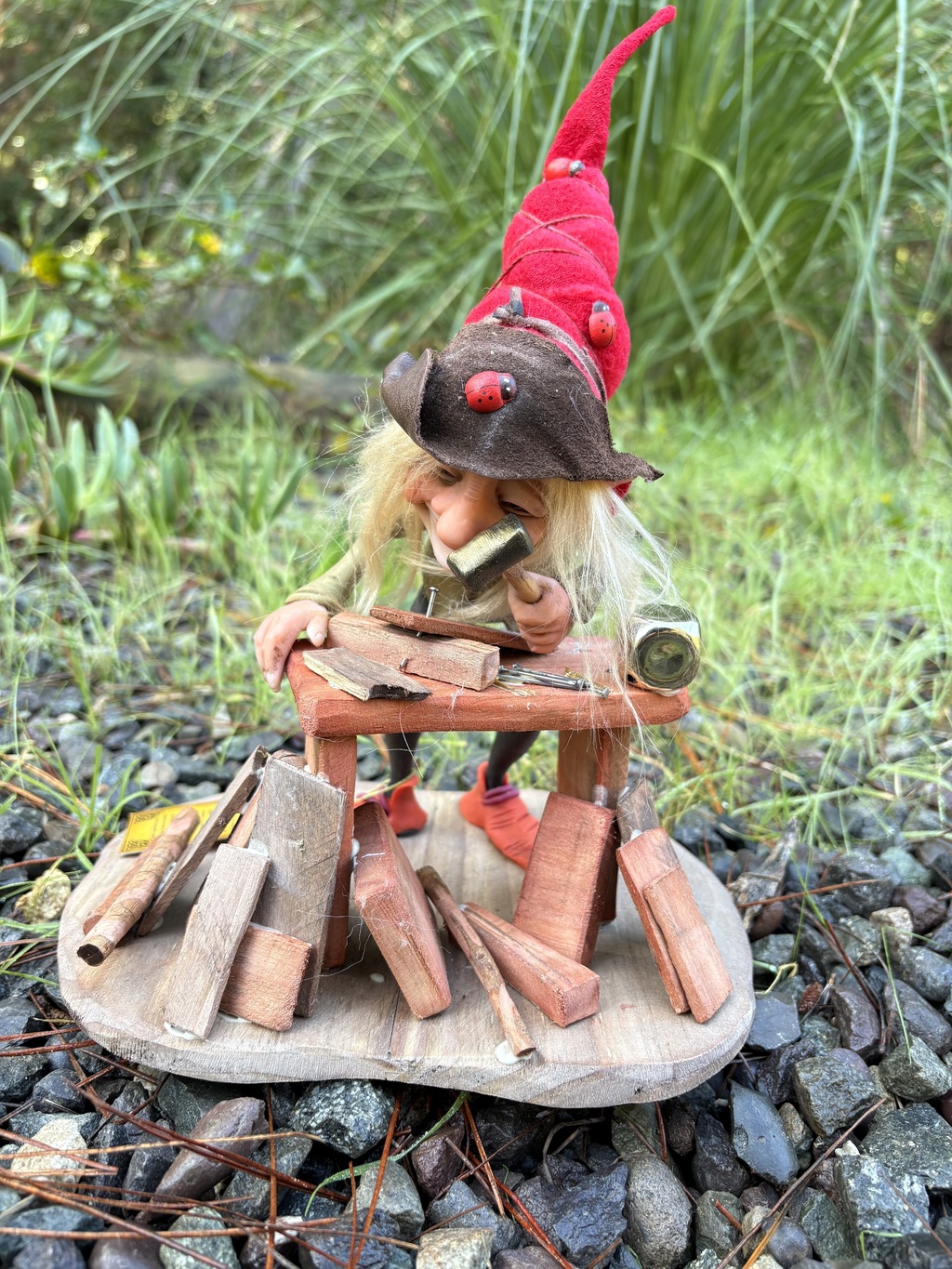 Este Duendecito viene a recordarte tu capacidad de producir, de brindar para poder recibir y hacer un equilibrio en tus energias. Este duende está hecho a mano con porcelana fria. Mide 20cms de alto por 28cms de ancho.